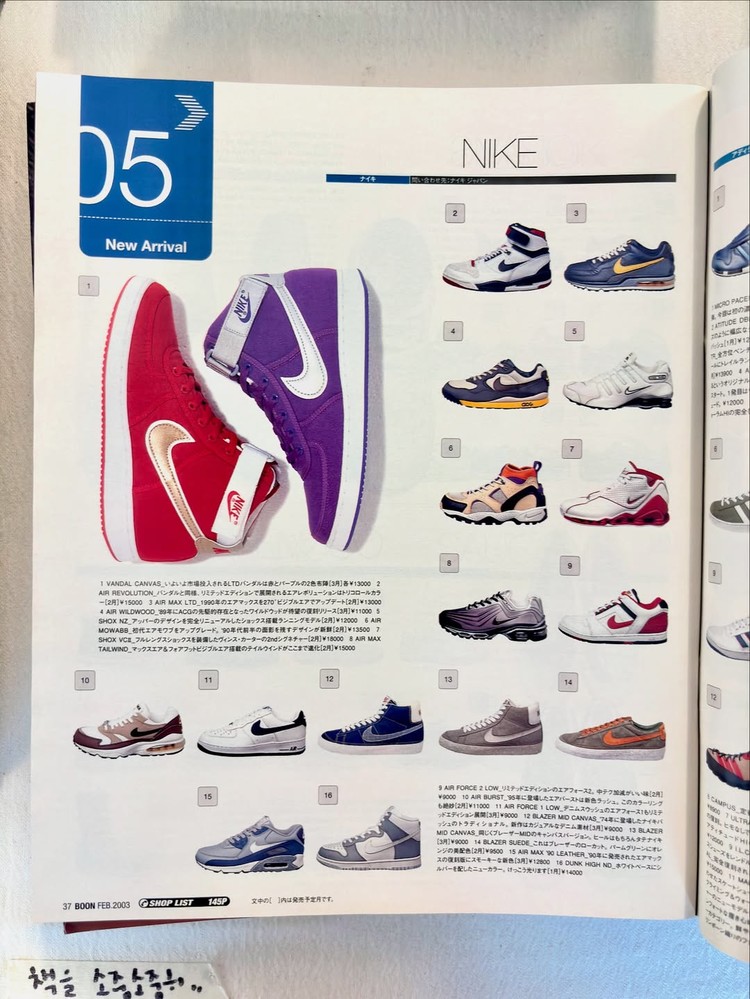 Boon magazine 2003년 2월호를 확인하세요. 이번 호는 2003년 주요 스니커즈 모델 100선을 총집합해 일본 한정 모델까지 세밀하게 분석하고, 셀럽들이 애용하는 가방을 주제로 후지와라 히로시, 니고, 유키 등 일본 스트리트씬을 대표하는 인물들의 스타일을 조명합니다.