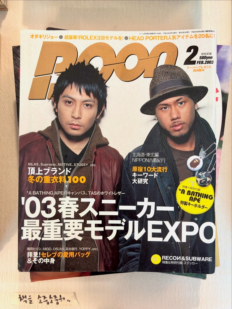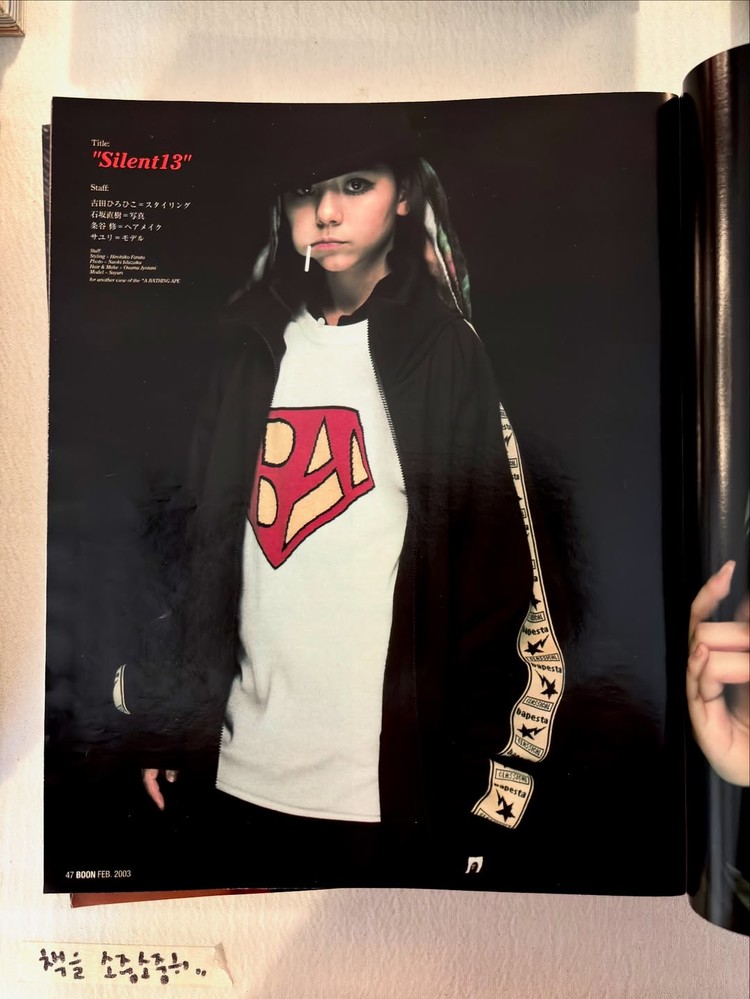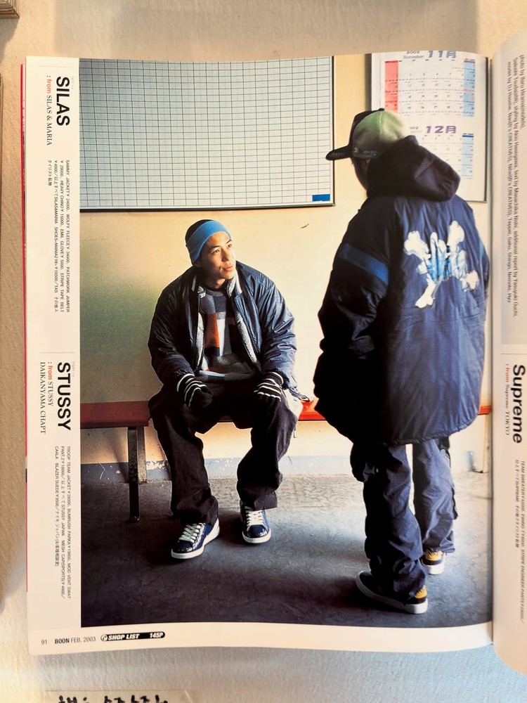 또한 베이프 2003 s/s 컬렉션 룩북과 함께 슈프림, 스투시, 텐더로인 등 당시 인기 브랜드들의 겨울 아이템을 한눈에 정리했죠. 도쿄 거리를 채운 리얼 스트리트 스냅까지 담아 2000년대 초 일본 스트리트 패션의 공기를 고스란히 느낄 수 있습니다.
