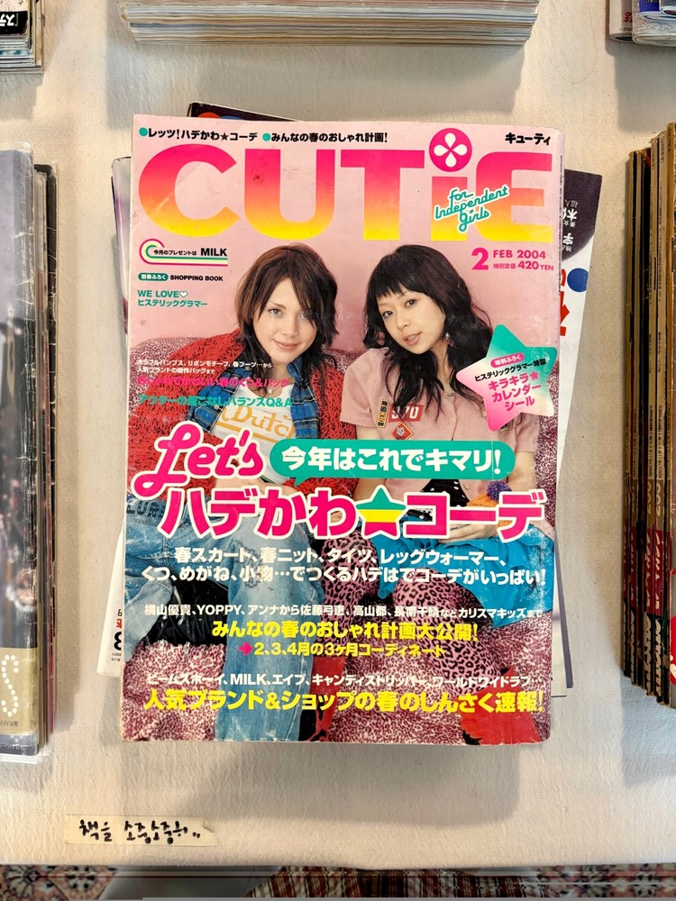 요피와 츠치야 안나를 메인 모델로 봄 트렌드와 함께 빔즈보이, 히스테릭글레머, 밀크 등 당대 인기 브랜드들의 신상 에디토리얼과 카달로그까지, 그리고 부록으로 히스테릭글레머 반짝이 스티커도 온전히 있습니다. 2000년대 CUTiE 걸들의 봄을 준비하는 방식을 확인하세요