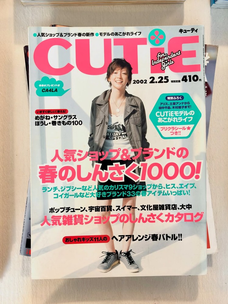 CUTiE 2002년 2월호는 ‘인기 숍 & 브랜드 봄 신작 1000’ 이라는 타이틀로 안경, 모자, 머플러등 겨울철 인기 있는 액세서리 셀렉트숍 33개 소개와 함께 33개 브랜드의 봄 코디, 스포츠 스니커·우주감 잡화숍 신상품, 멋쟁이 키즈들의 방과 일상, 봄 헤어 어레인지 배틀까지 한 번에 모은, 그 시절 하라주쿠 소녀들의 위시리스트를 통째로 묶어둔 봄 시즌 카탈로그 같은호 입니다.