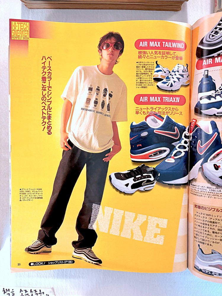 COOL 1997년 9월호는 당시 하이테크 스니커즈, 빈티지 데님, 일본 스트리트 브랜드를 집중적으로 다루었습니다. 에어맥스 이후 하이테크 러닝화 붐 소개와 Levi’s, Lee 같은 빈티지 데님 카달로그와 구별법을 소개하며