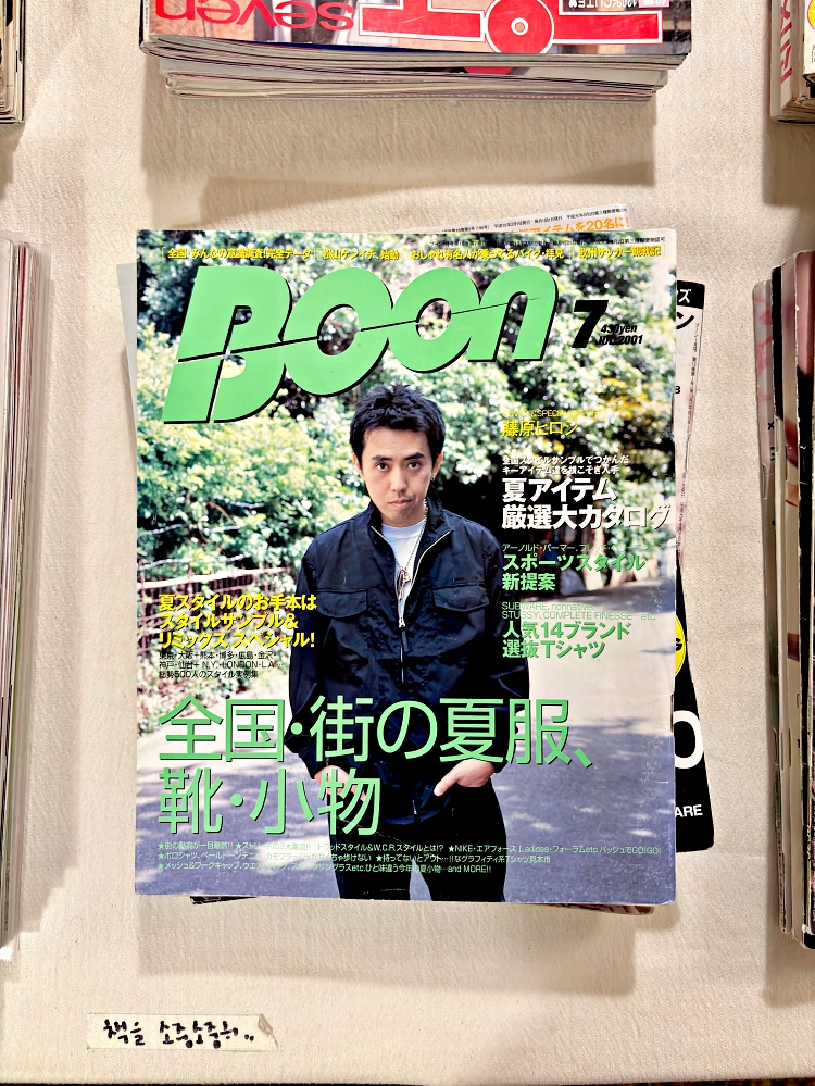 후지와라 히로시가 표지모델인 BOON magazine 2001년 7월호는 여름철 특집으로 전국 거리에서 만난 500명의 여름 스타일과 해외 주요 패션도시의 스냅샷, 일본 스트리트 브랜드들의 최신 여름 신상 등 본격적인 s/s 시즌 트렌드와 함께 멋쟁이 유명인사들의 바이크와 바이커스타일 스냅, 후지와라 히로시에 대한 특별한 리포트가 실려 있습니다. 21세기 초 당대 일본발 스트리트씬에 대한 정보를 원하시는 분들에게 추천합니다. 아무쪼록 즐겨주세요. 감사합니다.