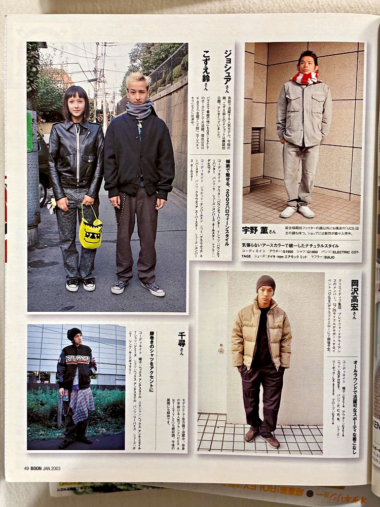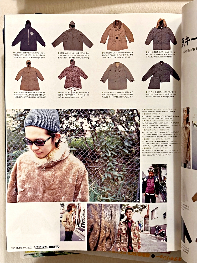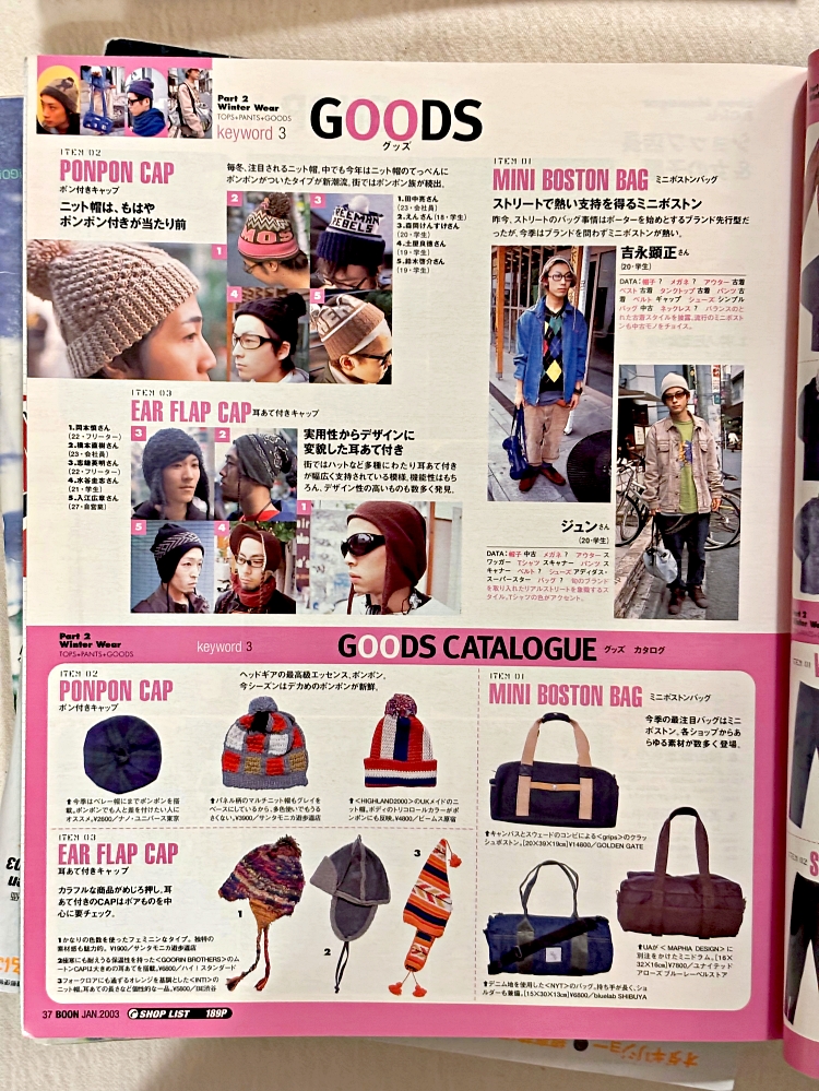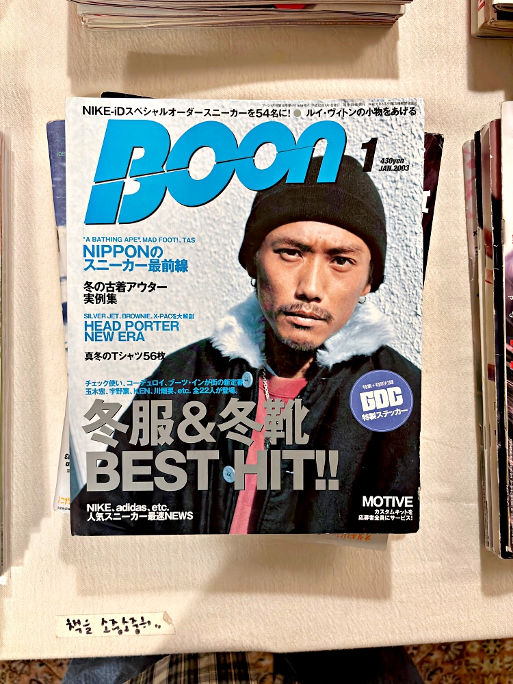 Boon magazine 2003년 1월호를 확인하세요. 이번 호는 겨울 옷 & 겨울 신발 BEST HIT!! 이라는 주제로 당시 주목해야할 겨울철 아이템들을 총 정리하며, NIKE iD 스페셜 오더 스니커즈 54족 소개, 도쿄, 뉴욕, 런던 등 주요 패션 도시의 트렌드 흐름 리포트, GDC의 초기 라인까지 다양한 내용들이 있습니다. 2000년대 초반 스트리트 트렌드의 흐름을 알고 싶은 분들에게 추천합니다.