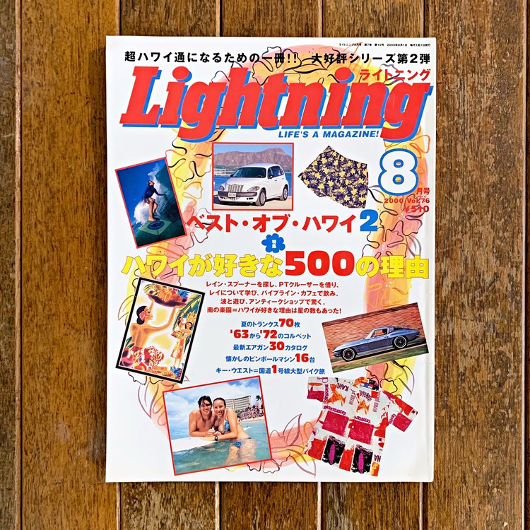 라이트닝 매거진은 패션뿐만 아니라 레저, 예술과 디자인, 서핑, 음악, 클래식 자동차와 오토바이, 50~60년대 인테리어 등 우리가 사랑하는 아메리칸 빈티지와 라이프 스타일의 모든 것을 다루는 미학을 중심으로 만들어진 라이프스타일 매거진입니다. 특히나 초창기 월간 호들은 이러한 특색이 뚜렷합니다. 아메카지나 아메리칸 라이프스타일을 사랑하는 분들이라면 이미 익히 알고 있는 한국에서 가장 대중적인 일본 잡지 중 하나이기도 하죠.