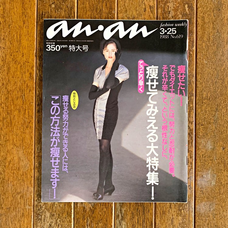 일본의 대표적인 여성지 an an의 1988년 월호들이 진열되었습니다. 88년 당시는 일본의 버블경제와 맞물려 레이가와쿠보의 꼼데가르송, 요지야마모토의 Y’s 를 필두로 값비싼 일본의 디자이너 브랜드들이 유행할 시기였습니다. 소위 DC 브랜드라 하죠,